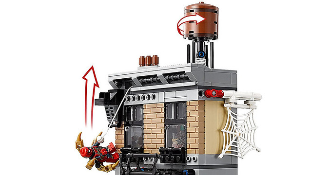 ▼在建築外側的逃生樓梯、頂部的水塔也是非常逼真寫實的結構,而這次的建築還具備了一些有趣的功能,比如說旋轉水塔把蜘蛛人吊起來,或是爆破窗戶之類的~XD