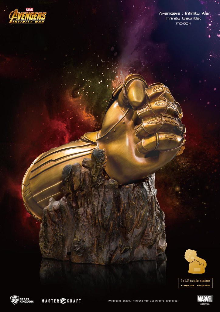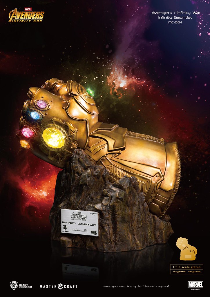 在推出「黑珍珠號」之後,隨著《復仇者聯盟3:無限之戰》即將在4月上映,台灣知名玩具品牌野獸國(Beast Kingdom)旗下的Master Craft 系列也發表了來自該電影的震撼新作,超霸氣的「無限手套」(Infinity Gauntlet)1/15 比例雕像,預計將於2018年第二季發貨!!