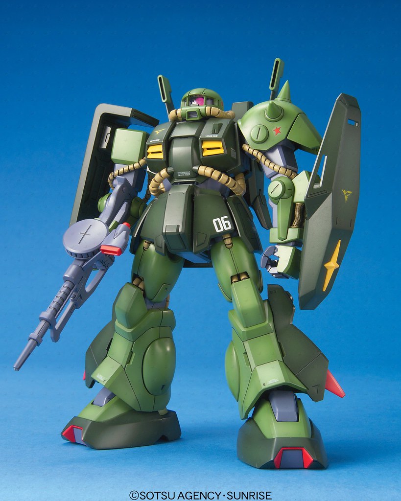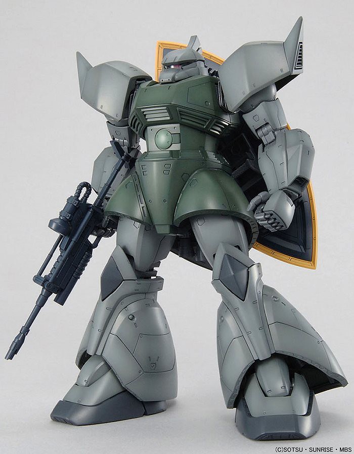 ▼ MG傑爾古格 GELGOOG 2.0,量產機塗成綠色是常識。做為一年戰爭後期的吉翁軍新一代主力機種,各項規格遠高於薩克ZAKU II,但據說有些老兵還是喜歡開薩克,因為操作簡便容易上手,開不習慣的新機體上戰場是找死啊。