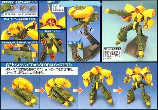 ▼ GH-001格利摩亞,海盜部隊使用的量產型MS,腹部駕駛艙可分離成逃生艙。圓滾滾的設計贏得了非常高的人氣,一機難求,比主角機還難買。