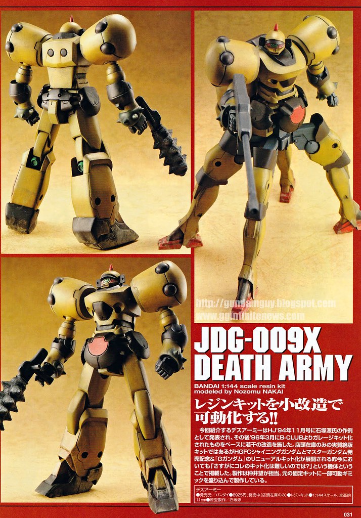 ▼ 《機動武鬥傳G鋼彈》JGD-009X死亡軍團,由惡魔鋼彈的骨頭增殖出來的軍隊,除了基本形態之外,還可以擬態成為其它鋼彈鬥士。可惜到目前為止都沒有推出過鋼普拉。