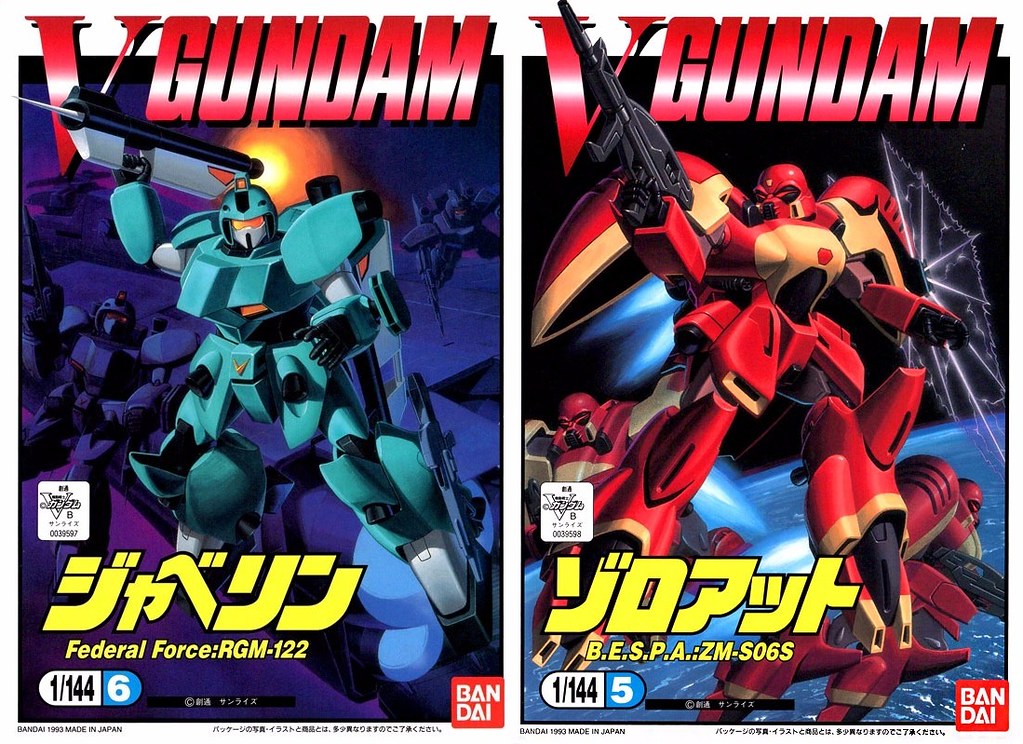 ▼ 史上最小的量產機,《鋼彈V》中登場的RGM-122賈貝林和ZM-SO6S索羅安特,高度只有14.5公尺,1/144模型採用了PC軟膠內骨架,提高可動度與組裝便利性。