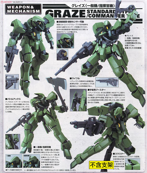 ▼ 格雷茲骨架,《鋼彈鐵血的孤兒》中末日號角的主力機體,能夠更換裝甲適應各種戰場條件,包括一般機、地面用、騎士式、燕式、尖刺式、盾式、交鋒式等各種衍生機。