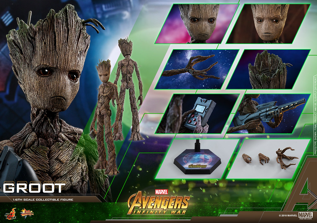 世界最具知名、製作水準最高的收藏級人偶廠牌Hot Toys,最新的《復仇者聯盟:無限之戰》商品系列,繼首波公開了「MMS473D23 鋼鐵人馬克50(Mark L)」與「MMS474 雷神索爾」之後,第三彈正式公開了《星際異攻隊》的1/6 比例「MMS475 格魯特」與「MMS476 格魯特 & 火箭套裝組」!~