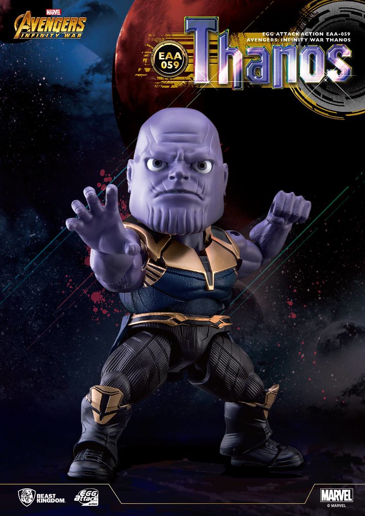 昨(8)日介紹了「Master Craft」系列的「無限手套雕像」,台灣知名玩具品牌野獸國(Beast Kingdom)旗下熱門的可動系列「Egg Attack Action(EAA)」也完整公開了來自《復仇者聯盟3:無限之戰》的首款新作,編號059 的「薩諾斯」(Thanos),預計將於2018年第二季發貨!!
