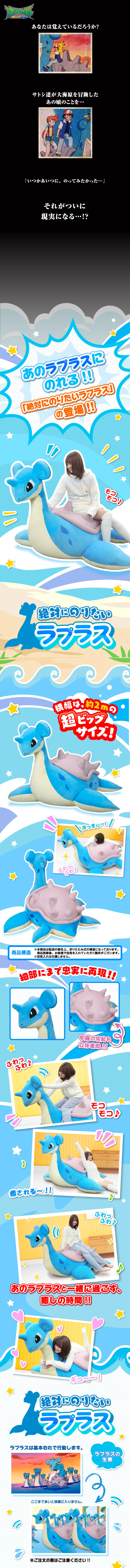 一年多前,日本寶可夢中心推出了一款又大又可愛的「超巨大尺寸 拉普拉斯布偶」讓人是心動動又蹦蹦跳,帶到家中後不論是孩子或寵物都為之瘋狂。正當眾人以為這 70 公分已經夠大時,殊不知日本萬代玩具公司在今(08)日宣佈,突破此紀錄的超大拉普拉斯布偶「絕對讓人想騎的拉普拉斯」將於 2018 年 07 月上旬推出!