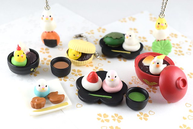 推出多款有趣動物轉蛋的EPOCH品牌之前以「鸚鵡茶房(インコ茶房)」為題材,將動物"鸚鵡"與各式"茶點心"食物成功設計結合成為有趣的創意題材,頗受到喜愛動物題材轉蛋的玩具人們的歡迎,這次將以精挑細選的"特選篇"來推出,這次將收錄有約八種類不同日式茶點+鸚鵡的轉蛋作品,喜愛《鸚鵡茶房》系列的玩具人可以參考一下歐。