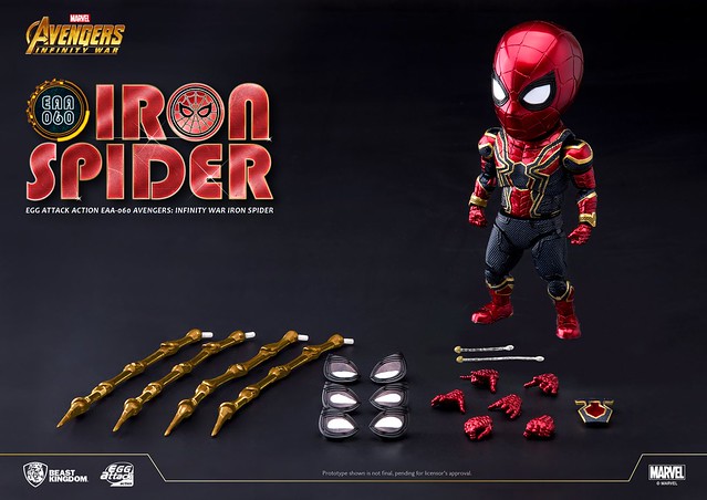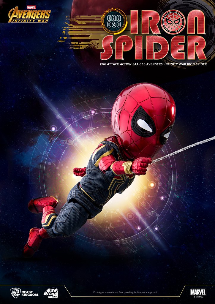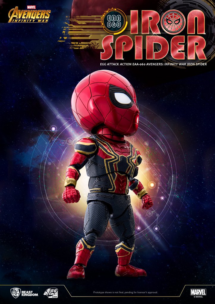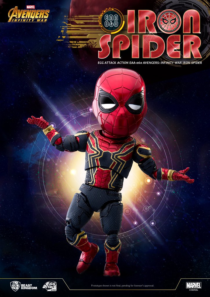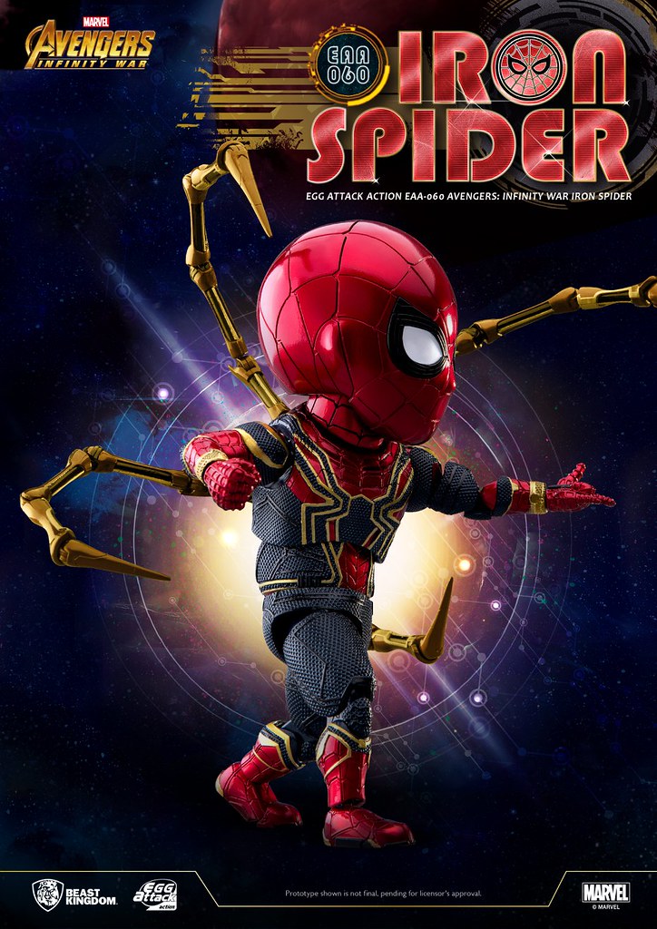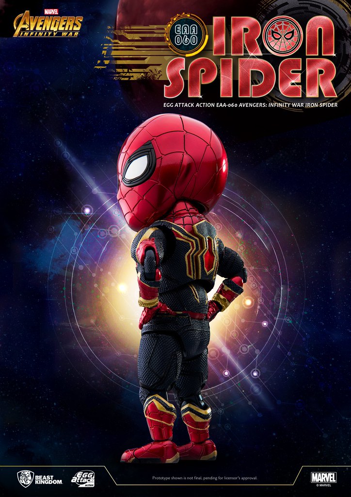 在擁有和藹笑顏的「薩諾斯」之後,台灣知名玩具品牌野獸國(Beast Kingdom)旗下熱門的可動系列「Egg Attack Action(EAA)」日前也完整公開了來自《復仇者聯盟3:無限之戰》的第二款作品,編號060 的「鋼鐵蜘蛛人」(Iron Spider),預計將於2018年第二季發貨!!