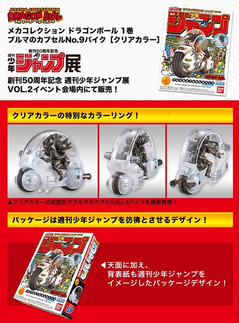 日BANDAI萬代玩具公司的BANDAI HOBBY模型事業部門,以《七龍珠》世界觀中獨特載具設計為主題、搭配最新分色技術,具備有輕鬆組裝的模型系列「MECHA COLLECTION 七龍珠」,這次將會推出系列的「第一卷 布馬的9號膠囊機車 週刊少年JUMP展Vol.2 會場限定版本(1巻 ブルマのカプセルNo.9バイク[クリアカラー])」的特殊透明版本!