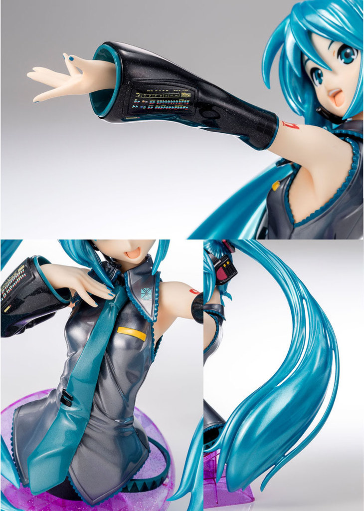 透過萬代多年來培育的成形技術,「Figure-riseBust 初音未來」能以組裝模型的形式,將飄逸柔順的頭髮、富有層次服裝造型與細膩皺摺精巧再現,而全新的射出成形技術「Layered injection」更運用在角色的臉部零件,眼睛、眉毛、膚色四種成形色全部集中,一片零件就搞定!