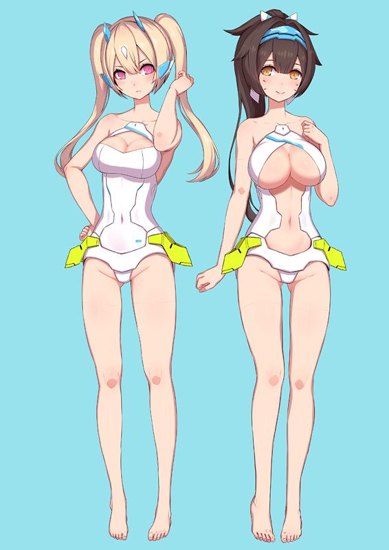 新發表的「朱羅忍者 蒼衣」則以原本的套件為基礎重新設計配色,裝甲上有如浪花的水藍與白色瞬間帶來沁涼的夏日風情,而原本黑襪造型的腿部也改成了膚色成形,素體的狀態就好像穿上了白色泳裝,完全突顯了角色的特性與賣點。雙馬尾零件採用新規造型製作,髮色也與弓兵對調,僅僅換色卻呈現完全不同的氛圍!