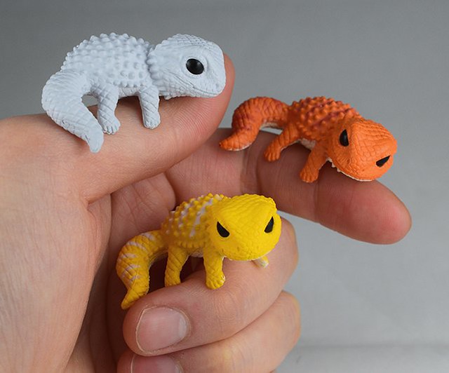 指上爬蟲類是以「豹紋壁虎(Leopard geoko)」與「鬃獅蜥(Bearded dragon)」這兩款的"爬蟲類"為取材,這次施以更加鮮豔的新配色來呈現,有購買上次指上爬蟲類轉蛋作品的玩具人們,這次當然要繼續添購新的配色啊!組成壁虎、鬃獅蜥的大軍團(誤),喜愛《指上動物》系列的玩具人可以參考一下歐!