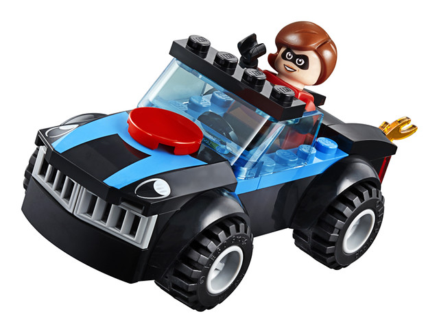 首先第一組就是在預告中可以看到的情景,英雄有超能先生與彈力女超人,簡單的小場景重現了銀行金庫,還有一台彈力女超人所駕駛的黑、藍配色汽車,反派則是「採礦大師」(The Underminer),開著他的鑽孔載具闖進銀行,準備要鑽破金庫啦~雖然場景稍嫌陽春,但附屬大量的配件可以遊玩~