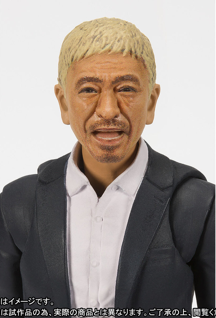 「S.H.Figuarts 松本人志」全高約 15 公分,徹底考證真人臉部的陰影、輪廓,並透過魂品牌新銳的「數位彩色技術」真實再現,內附的「無表情臉」、「笑臉」、「生氣臉」都極為立體!身體部份也再現了松本人志鍛鍊肌肉的習慣,呈現了相當壯碩的體格,全身更具備 18 處可動部位,可擺出節目中演出的多種動作,甚至惡搞電影經典的動作!