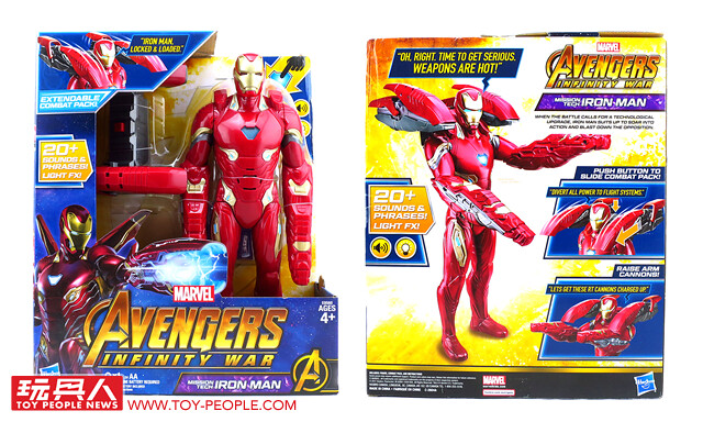 而MISSION TECH的14吋鋼鐵人,則是採用《無限之戰》中登場的全新鋼鐵衣馬克50(Mk L),可發出高達20種以上的聲光效果,藉以重現劇中武裝及飛行背包展開的表現,兩者的表現對於熱愛漫威的粉絲而言,肯定有著不可抗拒的吸引力,那麼接下來,就讓今天的開箱報告為玩具人們作個迎接無限之戰的熱身準備吧!