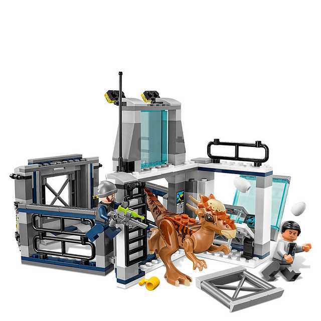 這組的主題就是系列電影最常見的恐龍逃脫啦~冥河龍最大的特點就是帶著尖刺的厚重的頭蓋骨,即使是在同科的厚頭龍中也算相當特殊,有在收藏樂高恐龍的玩具人千萬不能錯過這組啊!人偶部分是遺傳學家Dr.Wu 和一位男性Tracker,場景則是造型單薄的實驗室。