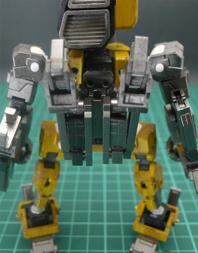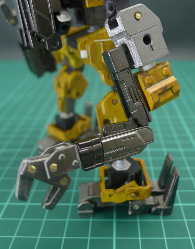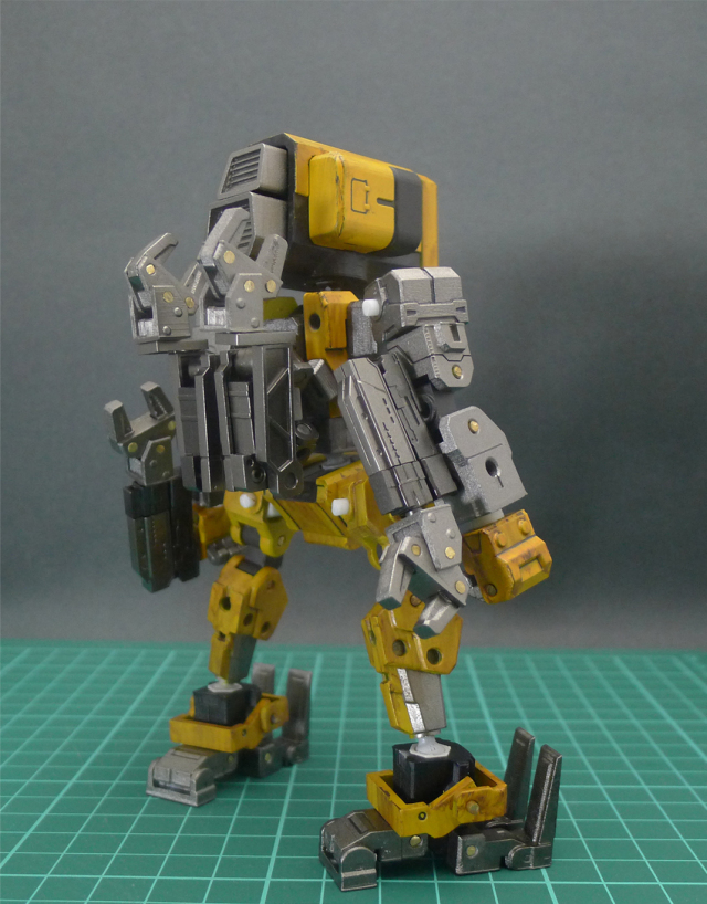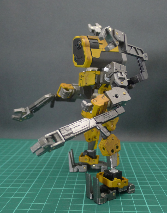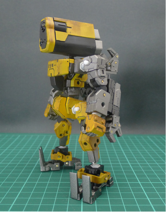 裝備的部分,使用了壽屋的M.S.G系列的手臂背包,在手臂末端的部分,裝上了自行設計的夾爪,畢竟是工程用機體,多幾支手臂好辦事~