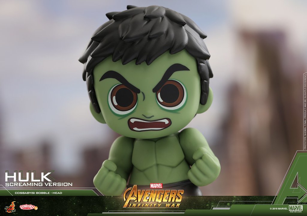 在這波的無限之戰 Cosbaby(S) Bobble-Head Series 中一共包含了七位角色可以收集:美國隊長、黑寡婦、黑豹、戰爭機器、浩克、洛基,以及酷寒戰士,每位角色都以最新電影的造型設定製作,並以Q 版身型比例重新詮釋,每款作品高約9.5 公分,浩克則是高約12 公分;雖然是可愛的造型,但裝備細節的刻畫都相當精準,美國隊長臉上還佈滿傷痕,浩克則是有普通、咆哮兩個版本,而瓦干達的帝王根本直接化身為可愛的寵物貓了吧~:D