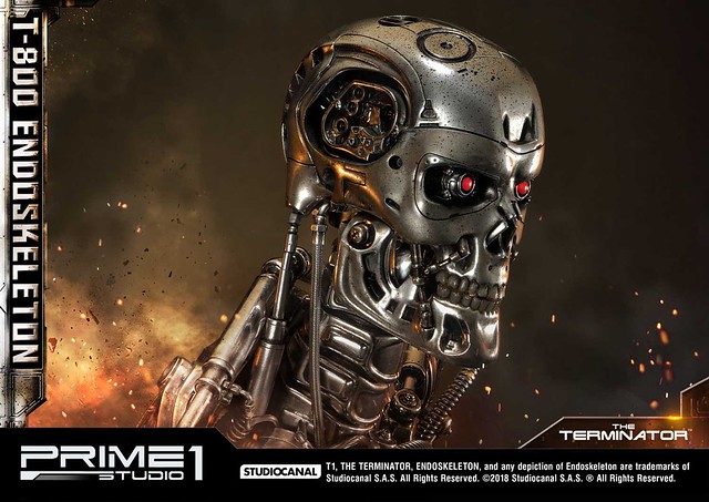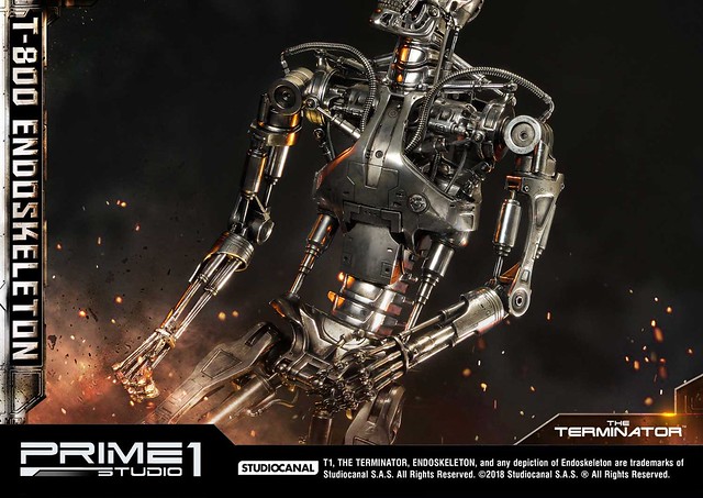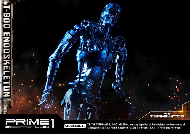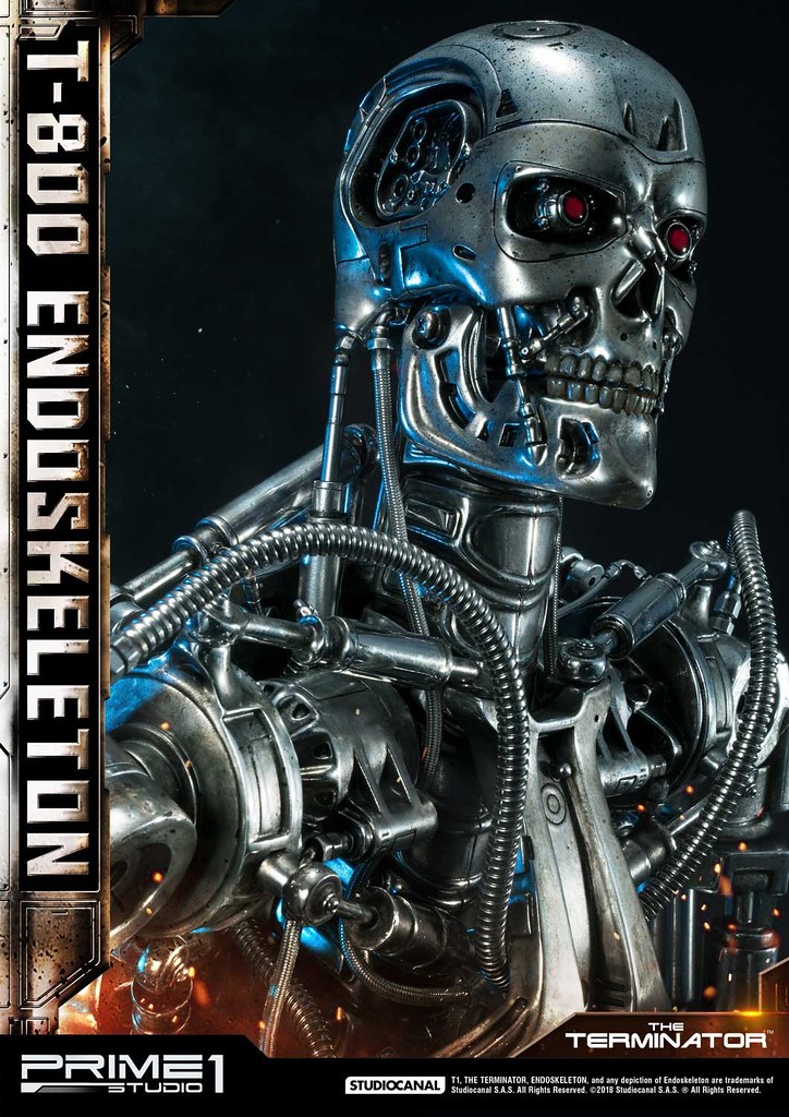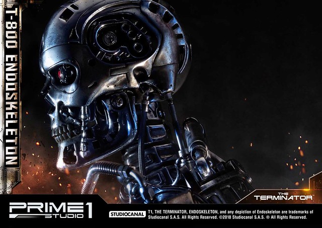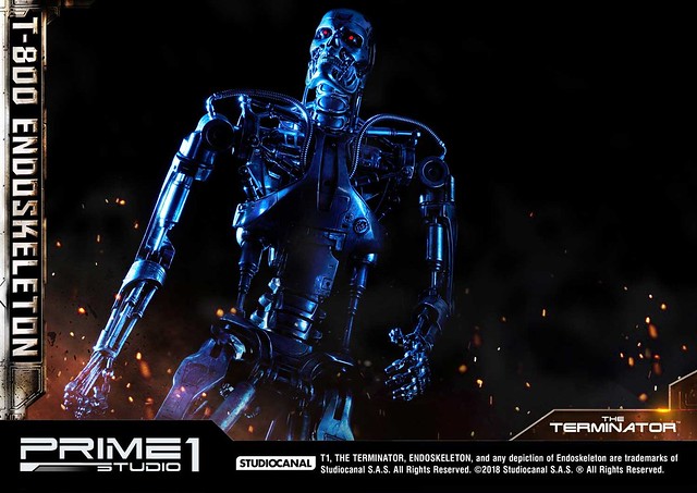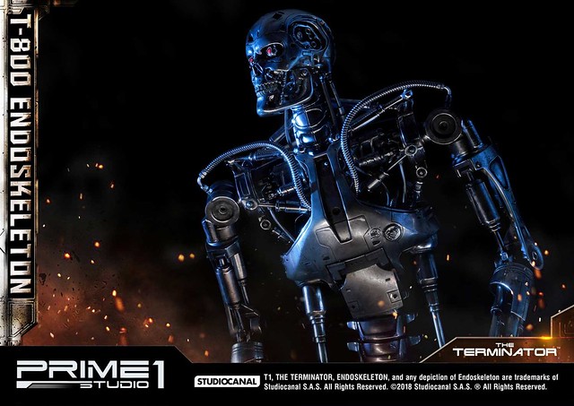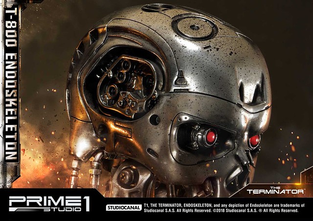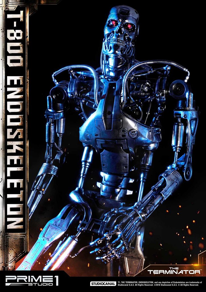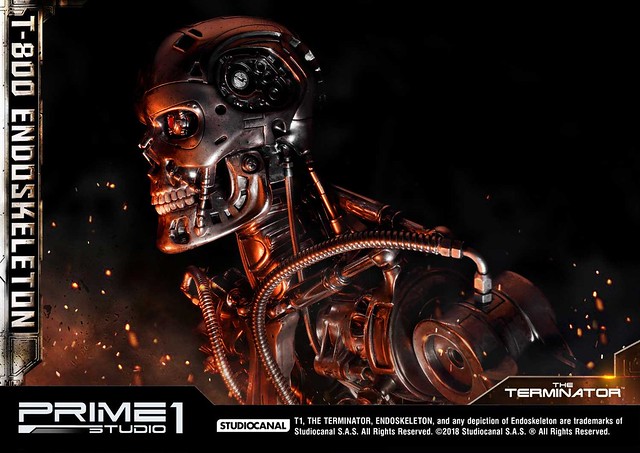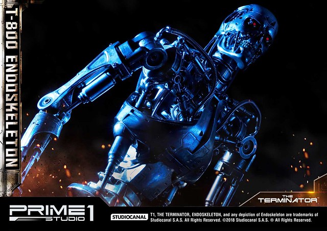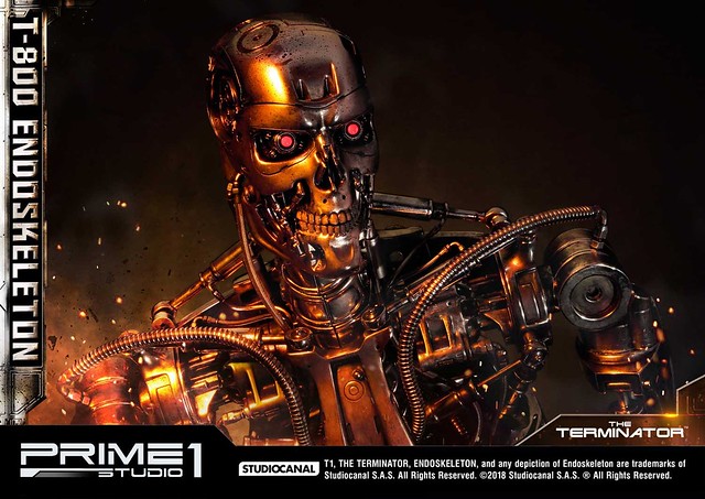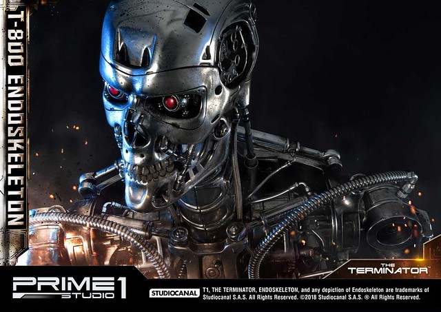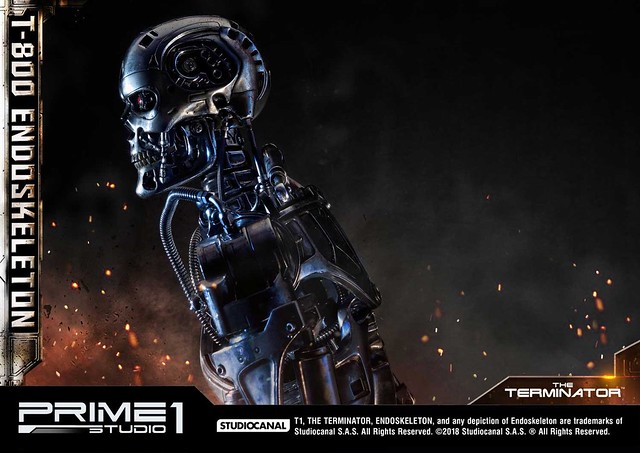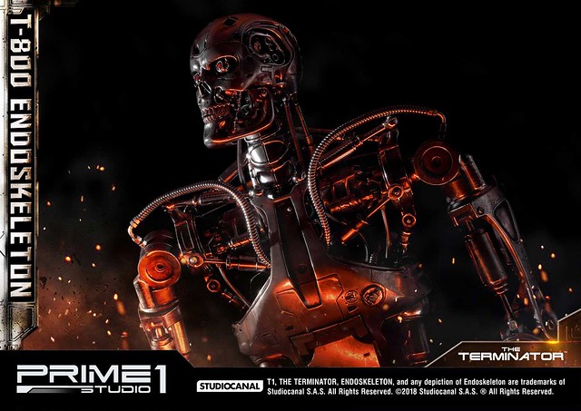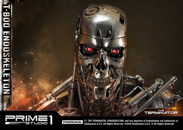 在1984年上映、由大導演「詹姆斯·卡麥隆」執導的《魔鬼終結者》中,T-800 是天網(SkyNet)所指派回到過去的魔鬼終結者,它從2029年穿越時空來到1984年,目的就是要殺死「莎拉·康納」,因為在未來的世界裡,莎拉·康納的兒子「約翰·康納」將會率領人類對抗天網的機器人大軍;T-800 的外表與正常人無異,但身體內部是無堅不摧的內骨骼(Endoskeleton)。而這次Prime 1 Studio 即是把超經典的T-800 內骨骼精美雕像化,實在太驚人啦!
