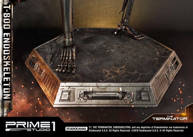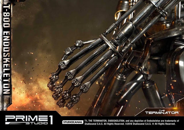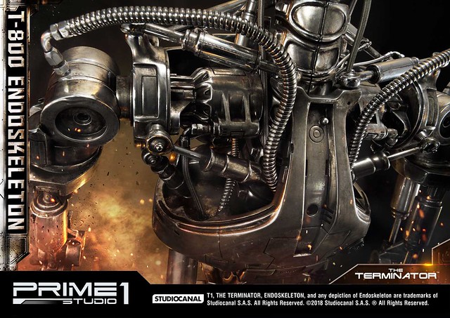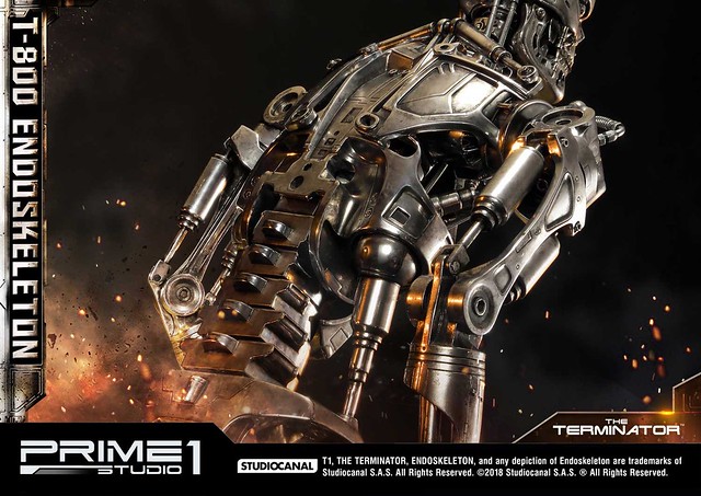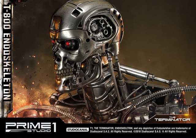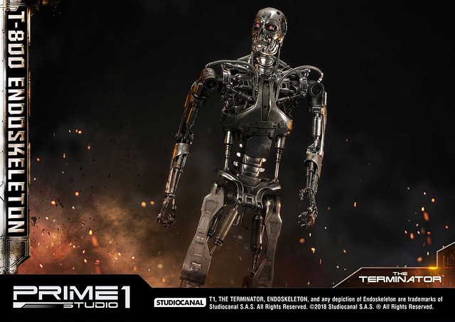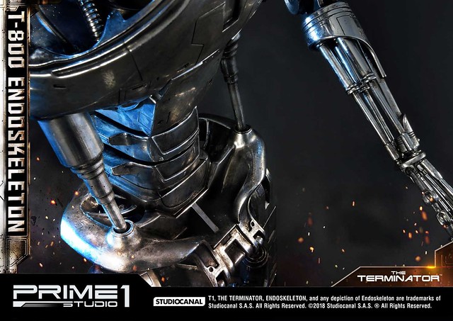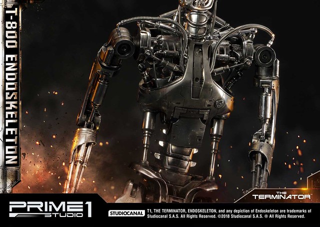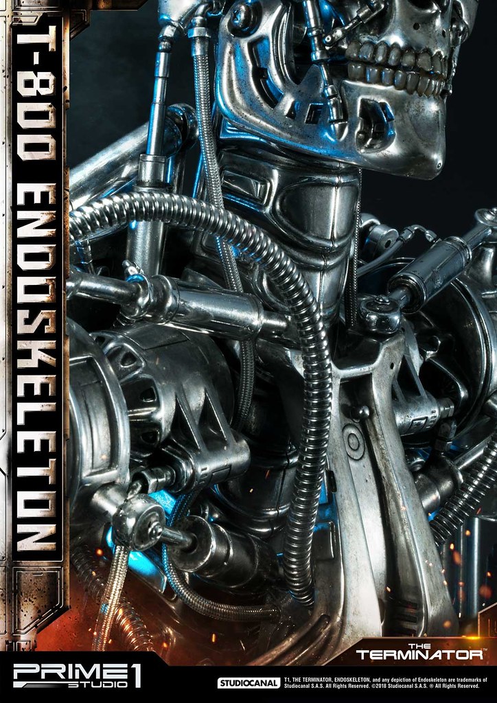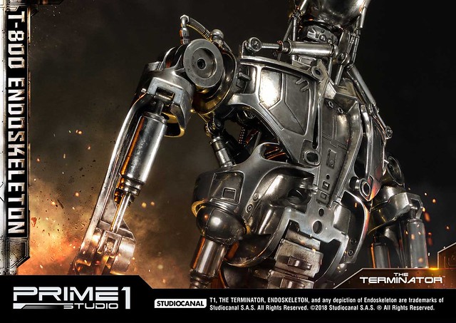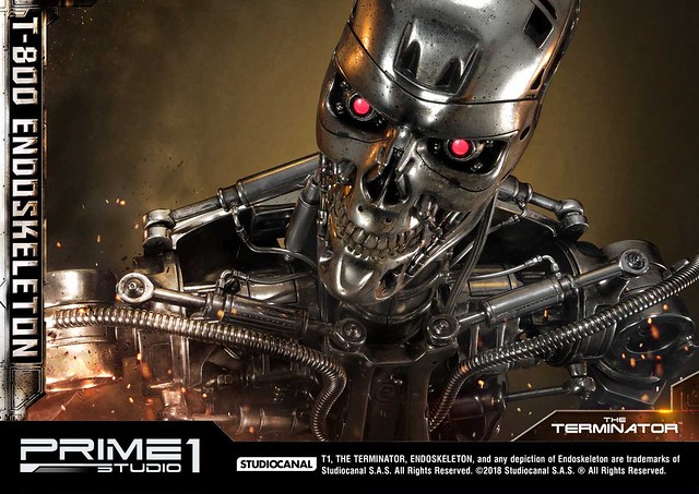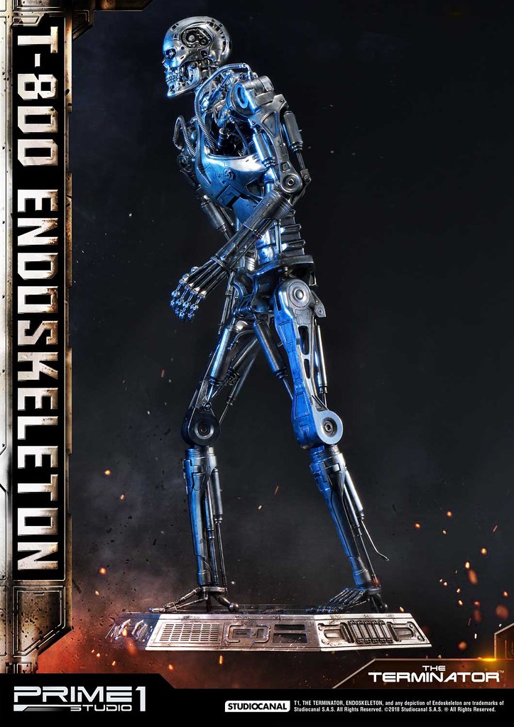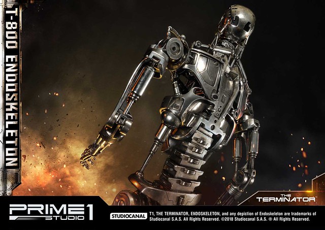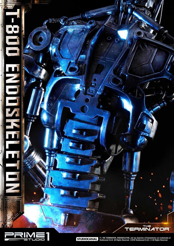 在1984年上映、由大導演「詹姆斯·卡麥隆」執導的《魔鬼終結者》中,T-800 是天網(SkyNet)所指派回到過去的魔鬼終結者,它從2029年穿越時空來到1984年,目的就是要殺死「莎拉·康納」,因為在未來的世界裡,莎拉·康納的兒子「約翰·康納」將會率領人類對抗天網的機器人大軍;T-800 的外表與正常人無異,但身體內部是無堅不摧的內骨骼(Endoskeleton)。而這次Prime 1 Studio 即是把超經典的T-800 內骨骼精美雕像化,實在太驚人啦!