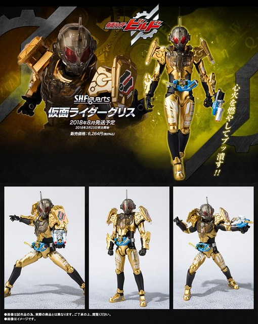 日BANDAI萬代玩具公司暢銷熱賣的S.H.Figuarts可動系列,以最新《假面騎士Build》特攝劇集為題材公開了「假面騎士Build 兔子坦克型態」以及惡役騎士「夜霸」還有謎的角色「血逐」,劇中登場的第二位騎士「假面騎士Cross-Z」還有「機器製造者&零件設置」以及「假面騎士Build 兔子坦克氣泡型態」後,近日官網公開將繼續推出「假面騎士Grease(仮面ライダーグリス)」的情報預覽照片以及販售相關資訊。
