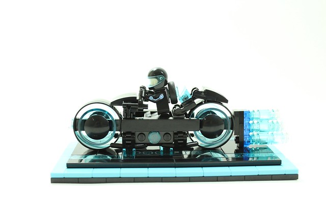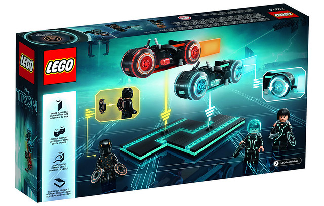 「LEGO 21314 創:光速戰記」一共包含兩台光輪機車與三位角色人偶,另外,還有帶著光軌痕跡的展示地台。光輪機車的線條比原作者的設計更加洗鍊,座位兩旁採用弧形零件,而光輪的部分雖然沒辦法逼真地營造出近乎中空的視覺效果,但用上半透明的藍、橘色圓盤零件,最大限度地還原電影的造型設定,值得一提的是人偶與機車搭配的方式,官方版本更貼近電影的「騎乘」,比原作者的「乘坐」更有動態感,光牆的零件以及光牆與光輪機車的連接方式也做出改變。