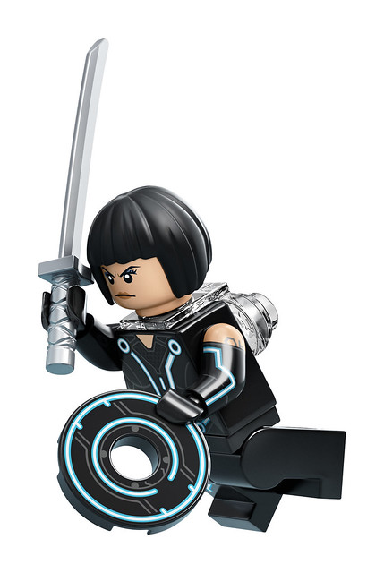人偶包含了男、女主角「山姆·費林」(Sam Flynn)和「柯拉」(Quorra),以及戴著頭盔的反派「林斯勒」(Rinzler),每人從軀體到雙腿的印刷都相當棒,「身份盤」的細節也精緻地呈現,林斯勒的頭盔實在超帥氣啊~拿著兩個Disc 也充分還原電影的角色設定,而山姆·費林也有刺蝟頭髮型、安全帽可以替換,柯拉則附上一把刀;搭配拼搭起來的地台,一定會有著很棒的展示效果,而且光是那兩台光輪機車就很值得入手啦~
