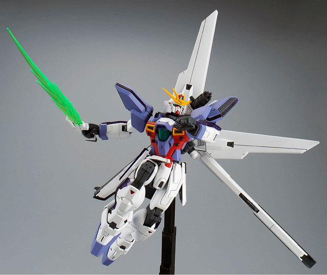 「MG 1/100 鋼彈X 3號機」使用的套件與過去一般販售的「MG 1/100 鋼彈X」並無差異,收錄了盾牌破壞步槍、大型光束劍等武裝,最具特色的「衛星加農砲」也擁有完整的展開機構,反射板部份則以透明零件+雷射貼紙搭配映出漂亮色澤。不過包含肩甲等多處藍色零件全面替換為三號機使用的配色,同時附上執筆特典漫畫的時田洸一老師設計的新規水貼紙。