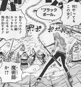 ▼ 原作漫畫當中娜美使用魔法天候棒施展出"黑球(ブラック・ボール)"。