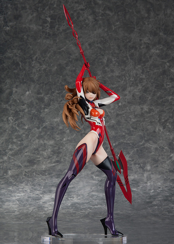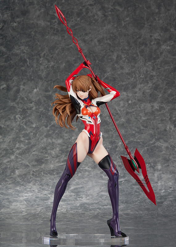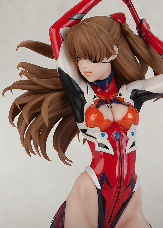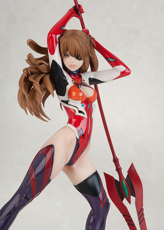 而原型師『吉澤光正』則依據插畫融入大膽而獨特的造型風格,將飄揚的髮束、駕駛服的線條與細節重現,手持卡西烏斯之槍的明日香在立體化後更具躍動感,白皙的肌膚透過出色的塗裝呈現白裡透紅、充滿彈性的柔軟質感。