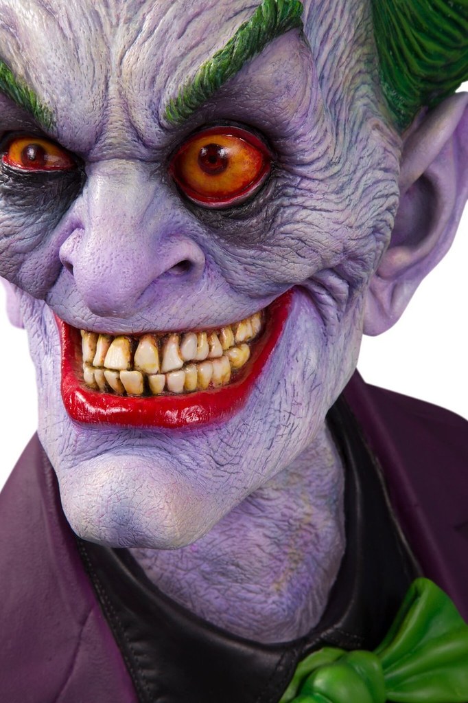 「小丑by Rick Baker 1:1 比例胸像」高約57 公分,以極為精湛的製作水準刻畫出小丑令人發毛、恐懼的神情,佈滿皺紋的皮膚、額頭上的血管、泛黃的牙齒、鮮艷的口紅,處處展現強烈的個人特色,充血的大小眼更大大增強了這位犯罪王子的瘋狂氣息,而且除了原本的黑色襯衫、土色背心外,還有橘色襯衫、淡紫色背心的搭配可以替換,而終極版不但是直接來自Rick Baker 的原型,還附屬了有Rick Baker 親筆簽名的證書,讓收藏價值再提升。