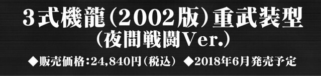 之前已經推出過的「3式機龍(2003版)重武裝型 的"限定夜間激闘版本"」,這次是以2002年的《哥吉拉×機械哥吉拉》特攝電影中所登場的「三式機龍 重武裝型」造型來呈現,在機龍的眼睛部份設計有Led燈的發光裝置,此作將於PREMIUM BANDAI、GODZILLA STORE和RIC-TOY等等線上商店於2018年4月6日開放訂購,喜愛《哥吉拉》系列的玩具人可以參考一下歐!
