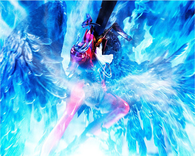 「GCCDX 亞森」以精湛的造型力再現了亞森纖細高大的體態,以及布料縫線、金屬扣、綁繩等華麗的服裝細節,更透過纖細的色彩塗裝展現鮮明紅色燕尾服以及霸氣十足的臉部。巨大的黑色羽翼則一根根雕刻出羽毛上的細節,呈現出茂密而蓬鬆的驚人質感,而底座則是被召喚時冒出的藍色火焰,極具氣勢。希望量產後也能維持這麼高的質量呀!