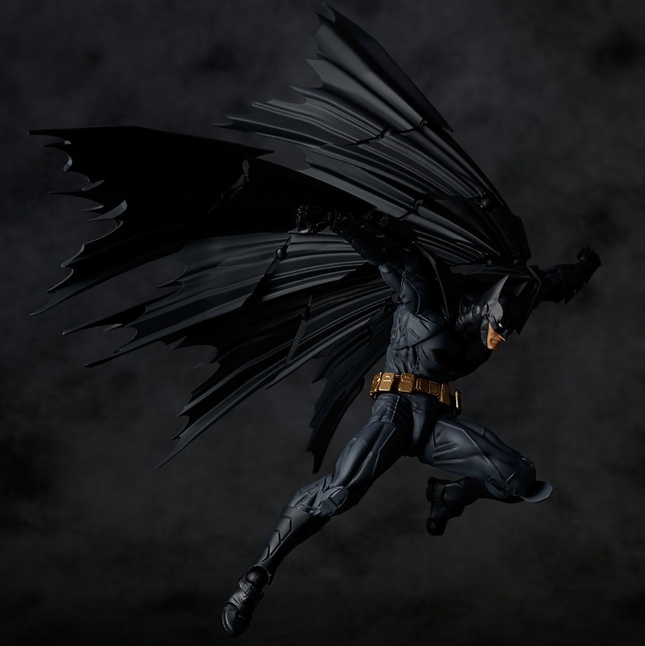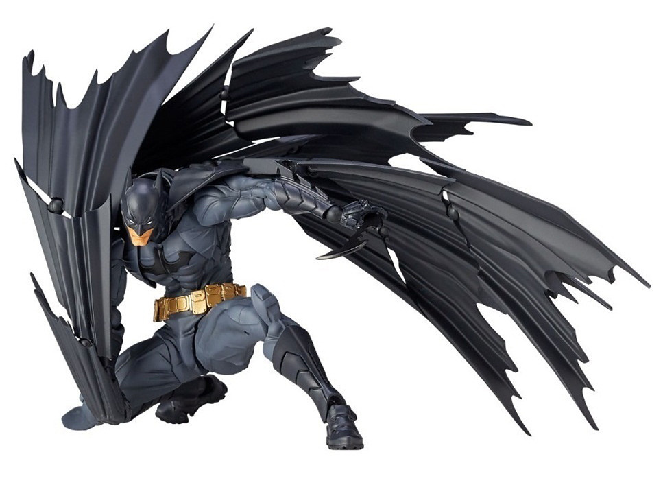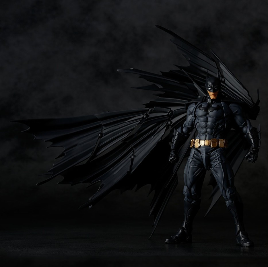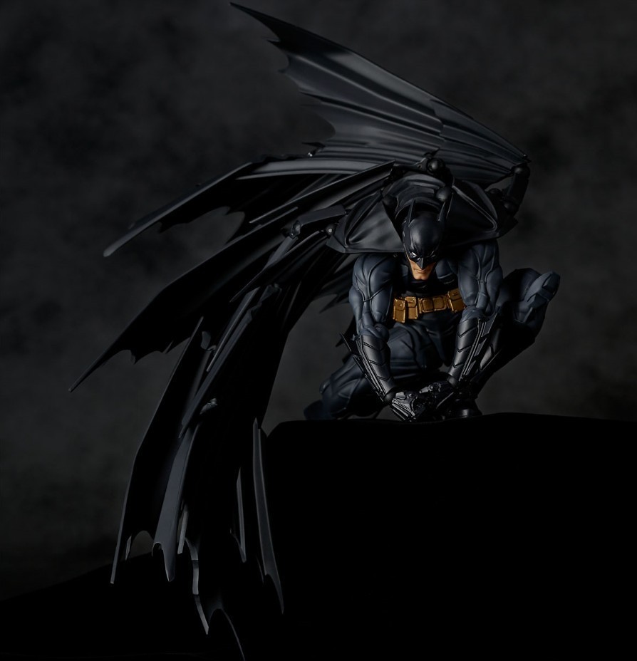 「Amazing Yamaguchi」 這個系列藉著「山口式可動」多年來的開發經驗,將美系英雄導入海洋堂特有的「轉輪關節」(リボルテック),在讓作品擁有出色肌肉線條造型的前提下,也能表現出極具躍動感的姿態。這次的蝙蝠俠以黑、金配色為主調,身型比例上同樣保持了絕佳的線條美感,緊身戰衣包覆著的粗壯肌肉形狀鮮明,精緻刻畫的皺褶細節更是加強了整體的張力,臉部則是採用偏長的造型來呈現。