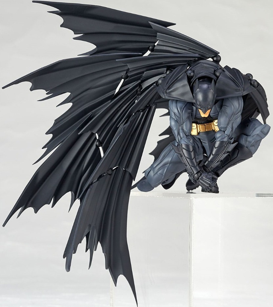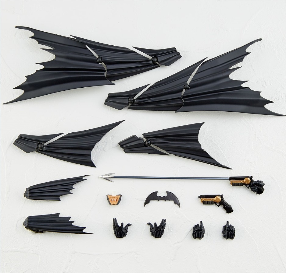 而本作最大的亮點無疑就是那帥到爆的披風啦~當初以為「萬磁王」的披風已經夠狂夠扯了,沒想到蝙蝠俠的披風使用了全新的設計,拆分為三對可動零件,兼具靈活的可動性與充滿力道的銳利線條,讓各位玩具人能夠自由呈現蝙蝠俠特徵的各種披風型態,為人偶帶來更加震撼的視覺效果~