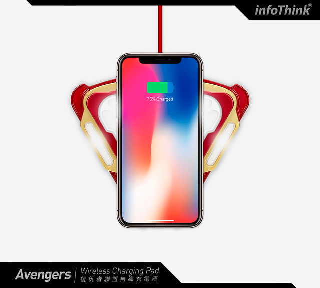 首先是以經典反應爐元素所設計的無線充電座,支援最高15W 無線快速充電,除了充滿科技感的造型之外,充電時還會發出閃爍的亮白色LED 呼吸燈!而充飽電之後則會呈現白色恆亮的狀態讓你輕鬆辨別,不用拆掉手機殼也能充,桌上也將少了一條惱人的充電線,兼具方便功能和帥氣造型,整個超吸引人,英雄迷千萬別錯過啦!
