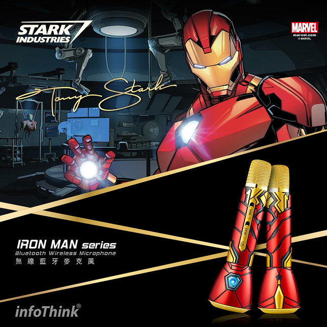 再來就是以鋼鐵人帥氣裝甲所設計的無線藍牙麥克風,不但擁有東尼式「低調」的搶眼外型,功能也是非常強大,特殊的回音設計讓你彷彿置身在KTV 一般,在收音處更使用了雙層鋼網,讓抗風、防噪功能再升級!還能搭配APP,長達4~6 小時的使用時間讓你盡情享受歡唱樂趣,光是裂甲風格的造型和高質感的金屬材質就讓小編超興奮!喜歡唱歌的玩具人絕對要買一隻隨身攜帶,隨時隨地展現好歌喉啊~XDDD