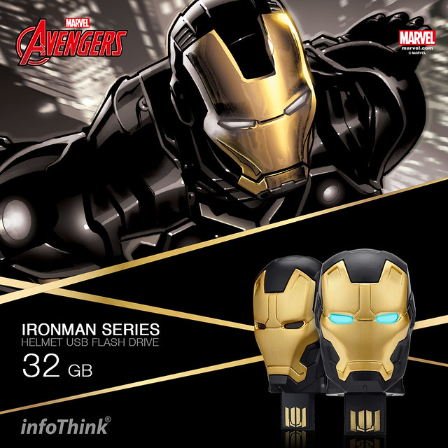 接下來的這兩款則是將鋼鐵人頭盔、手甲做成實用性超高的隨身碟,值得一提的是這次採用黑、金配色來限定推出,收藏價值再提升。兩款都採用滑動式的USB 接頭,髮絲紋的金屬表面呈現出高級質感,而且還具備讓你更安心的防潑水、防震、耐摔功能,頭盔款式的隨身碟在使用時雙眼還會發光歐~超有趣!