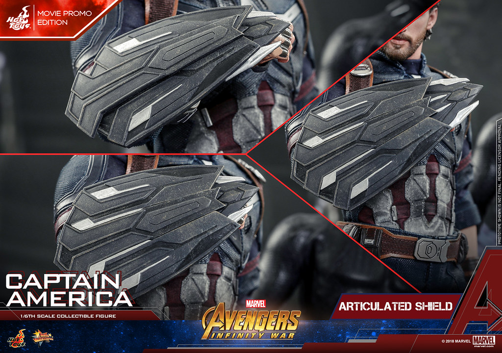 Hot Toys 《復仇者聯盟:無限之戰》1/6 比例人偶系列作品,終於正式公開了備受期待的人氣角色「美國隊長」!將同步推出兩種版本:MMS480 美國隊長 & MMS481 美國隊長(電影宣傳版);值得注目的是,兩種版本將追加神秘的武裝配件,必須保密至電影上映才能夠正式公開,而且電影宣傳版本還有兩款不同的神秘武裝...