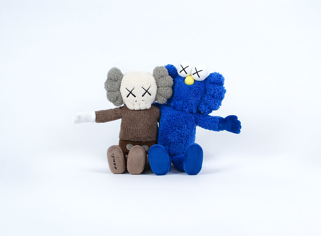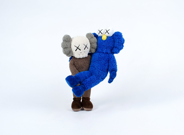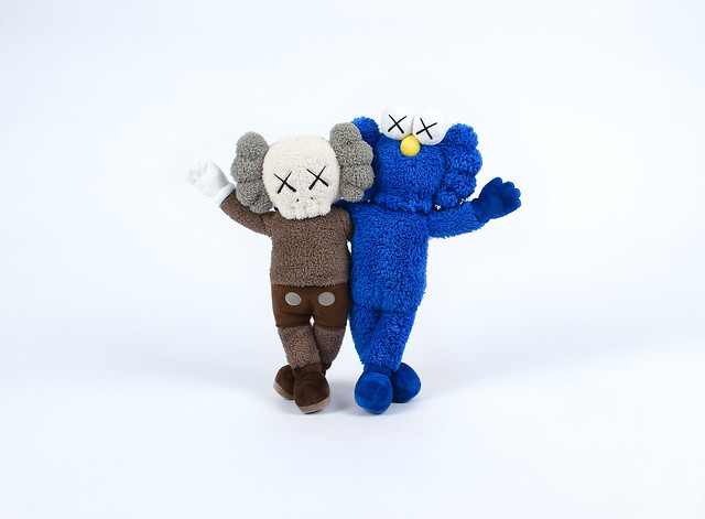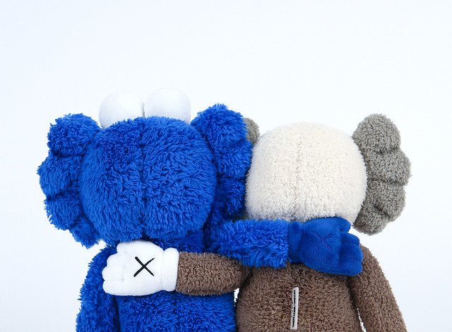 《COMPANION 是KAWS 筆下最知名的角色,看似穿著米奇短褲的人物展現出他一貫的個人特色,善於惡搞、翻玩知名角色的設計風格,在KAWS 的相關展覽中,也常常能看到COMPANION 以不同的姿勢出現;BFF(Best Friend Forever)除了一身毛茸茸的身體之外,同樣有招牌的交叉眼睛以及骷髏大頭的造型。》
