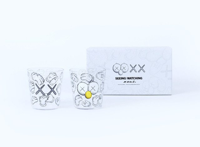 最後,就是兼具賞玩和實用價值的特製玻璃杯,同樣以「KAWS:SEEING/WATCHING」的手繪原稿為主題,採用纖薄玻璃製作,成雙成對的杯子收藏起來就是格外地開心:D 和其他KAWS 的商品共同展示也很可以~~~
