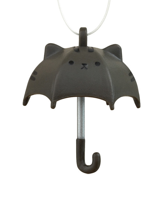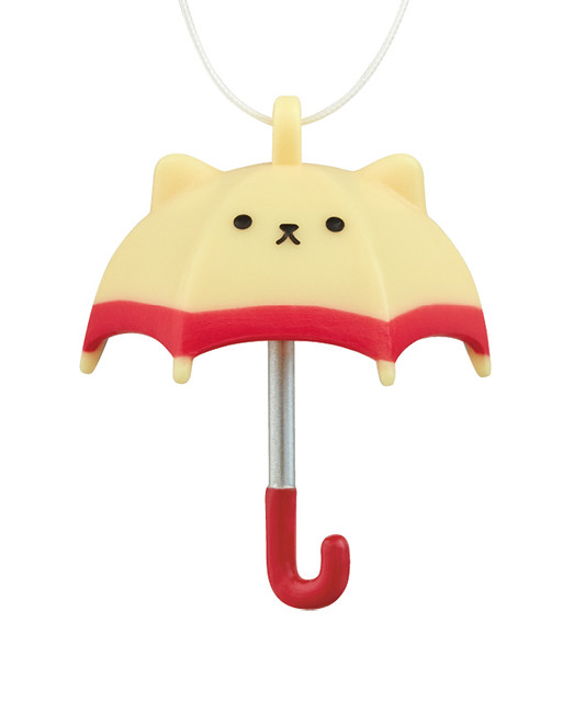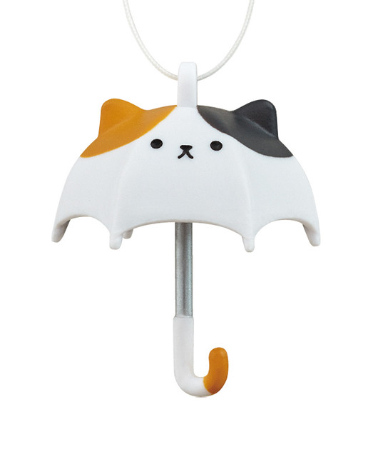 「晴天娃娃(てるてる坊主)」主要流行於日本以及亞洲等等地區,是一種懸掛在屋檐上祈求晴天的布偶。這次將可愛的貓咪結合著"晴天娃娃"和"雨傘"的創意設計,真的是相當有趣味啊!預計將推出有"貓咪晴天娃娃"與"貓咪傘"各兩款不同造型的六款不一樣貓咪的花色可以收藏,貓奴玩具人們千萬別錯過了啊!
