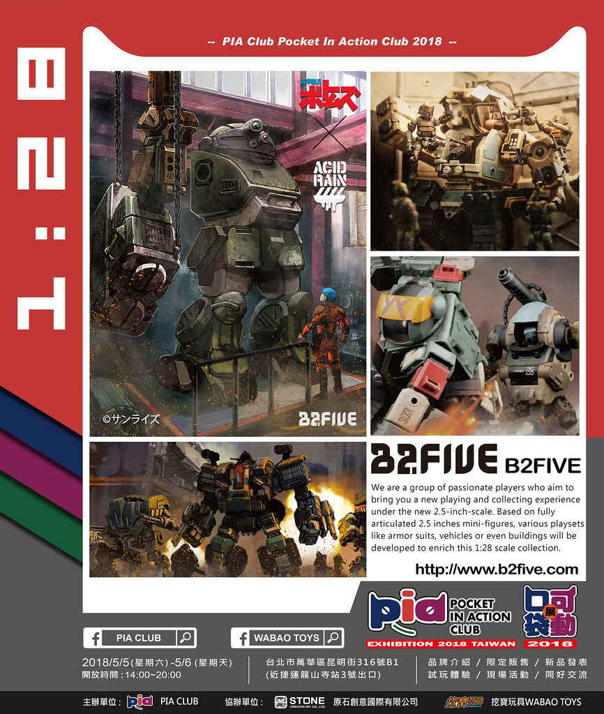 以1/28比例「B2Five」品牌廣為人知的Beaver,這次帶來的則是先前在香港C3展中曝光的裝甲騎兵聯名款與超具份量的Acid Rain Omanga Army!務必到現場來感受它的震憾吧!