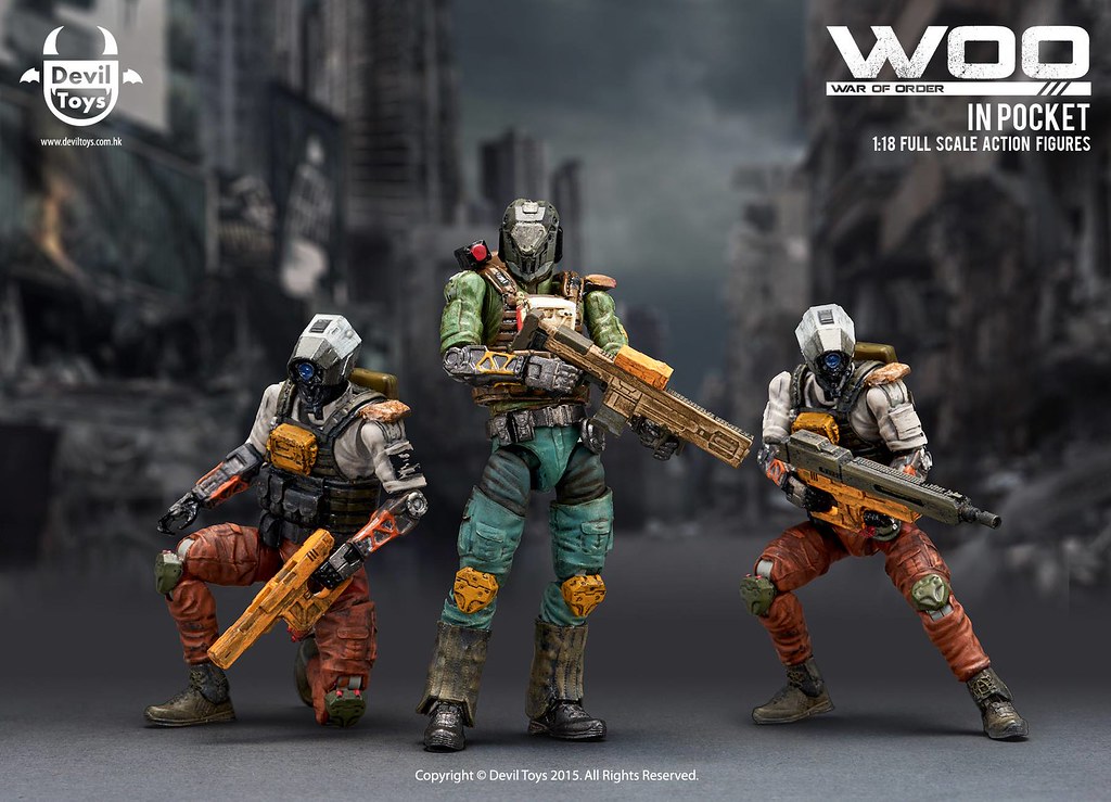 擅長軍事科幻並以細膩1/6比例人偶精艷大家目光的DEVIL TOYS,則是首次推出1/18系列的全新系列”WOO in Pocket”,尺寸變得更容易把玩,但該有的細節卻沒有少。