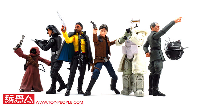 除了電影的角色-年輕版的「韓·索羅」及「藍道·卡利森」(Lando Calrissian),新的帝國兵種「山脈兵(暫譯)」(Range Trooper)也收錄其中,而出自於四部曲《星際大戰四部曲:曙光乍現》(Star Wars Episode IV: A New Hope)的「高級星區首長塔金」(Grand Moff Tarkin)、「死星士兵」(Death Star Trooper)、以及「爪哇族」(Jawa),也都是老玩家們必定入手的珍藏啊!接下來、就讓我們一起來看看這次「黑標6吋人物組」精彩的作品吧!