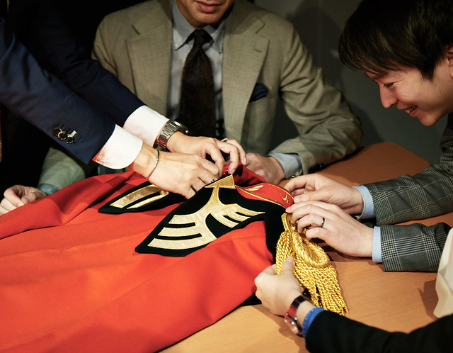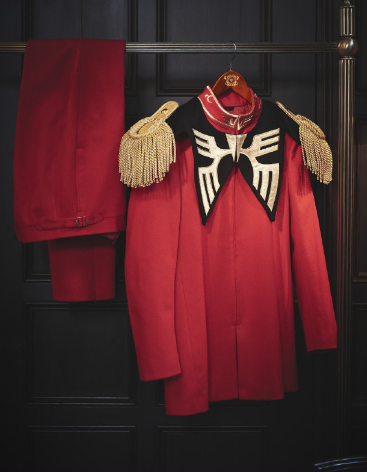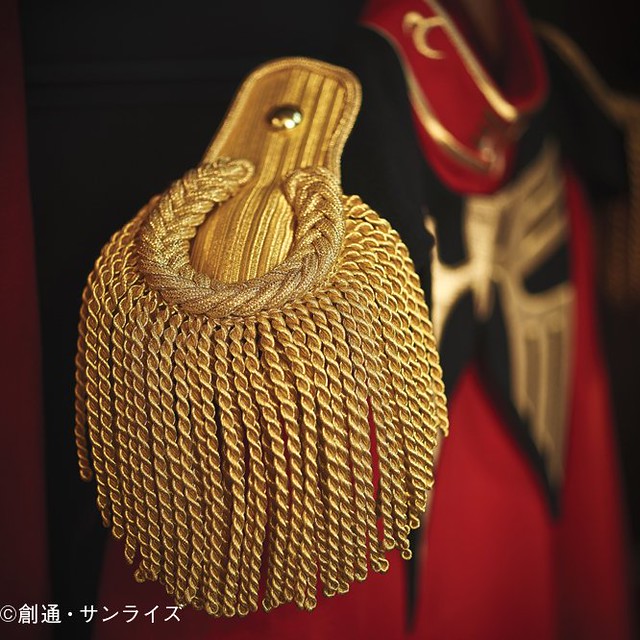 這套「夏亞.阿茲納布爾軍服」融合了日本與英國的技術共同打造,服裝的縫製工作交由英國皇室御用的品牌「DEGE&SKINNER」負責,這家經營了百年以上的裁縫店曾為王族・軍隊製作服裝,純熟技術有目共睹,此次的夏亞軍服更選用與英國近衛兵制服相同的材質。領口的刺繡、肩章部份則委託了日本國內的職人製作,細膩的工法造就縝密而厚重的極高質感。