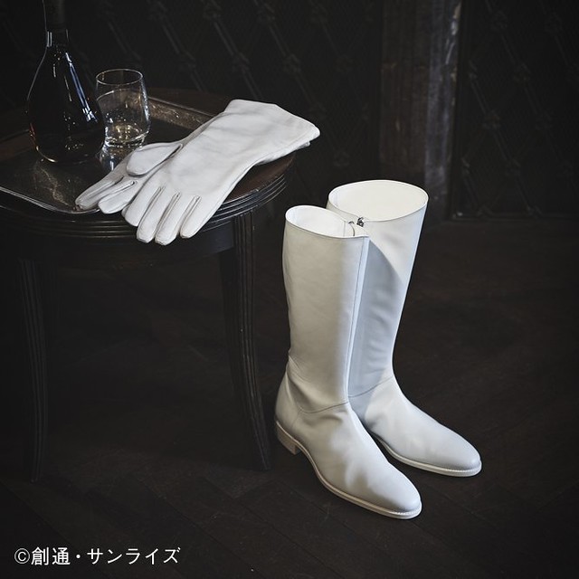 不過這套夏亞軍服預計僅生產 3 套,參考售價 864,000 日圓。另外也有羊皮製的白色手套(參考售價 21,600 日圓)、牛皮製的白色長靴(參考售價 118,800 日圓)可購買。