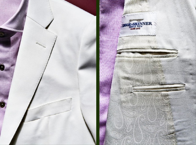 《機動戰士鋼彈》中除了軍服外,夏亞還有一套令人印象深刻的「白色西裝」。這套白色西裝通樣交由英國皇室御用的品牌「DEGE&SKINNER」負責,使用知名的日本尾州產布料製成,內裏則有華麗的佩斯利花紋。參考售價 183,600 日圓。