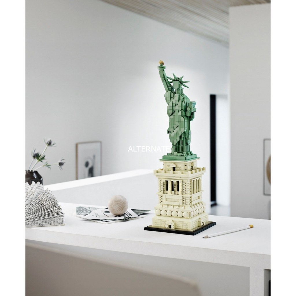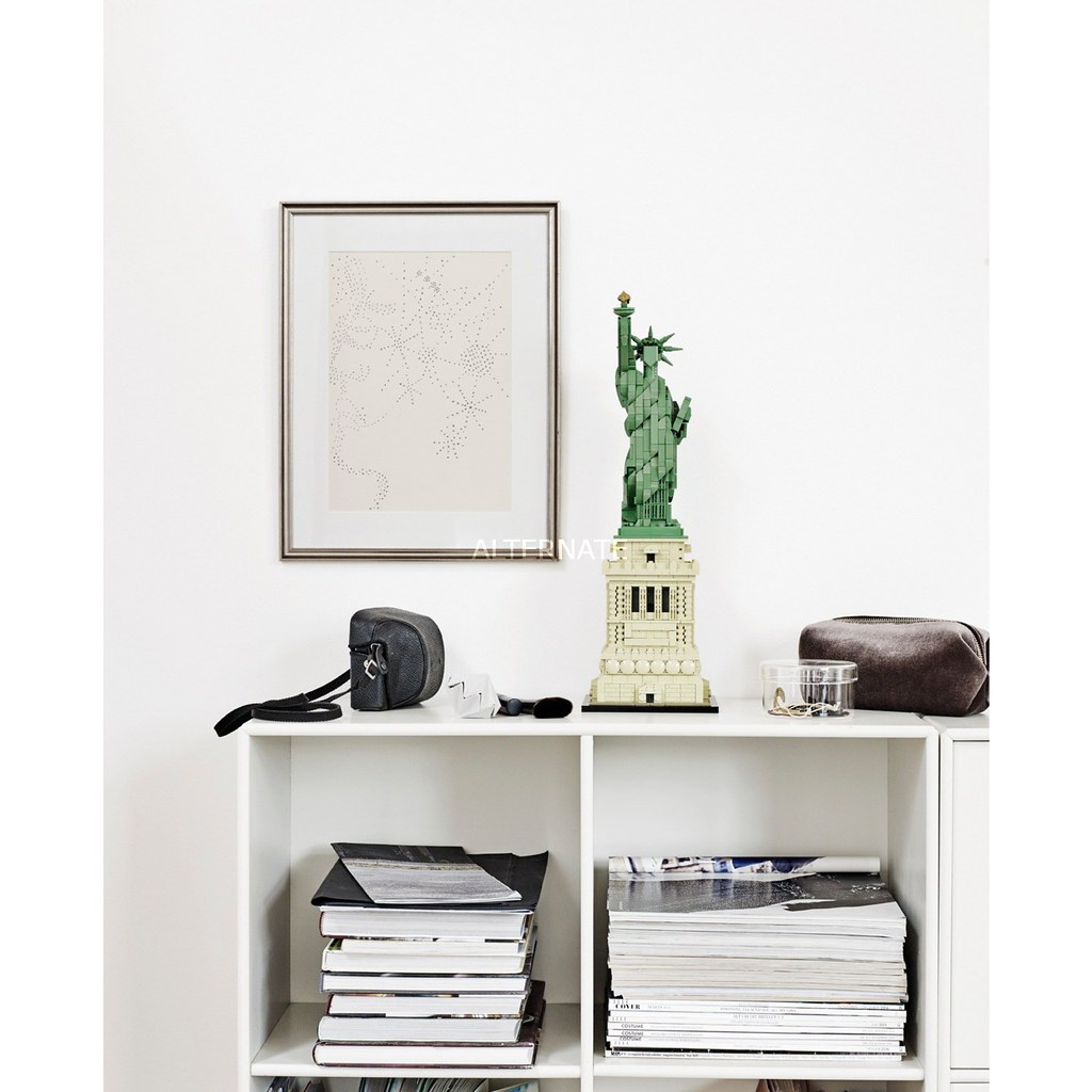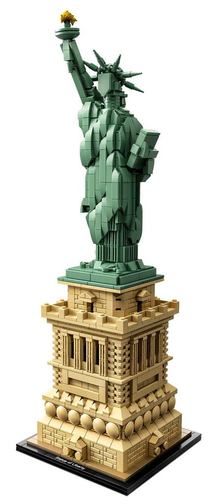以基本磚搭配顏色的運用,勾勒出建物、景點的形狀和神韻一直是建築系列最迷人的地方!而這次盒組所收錄的地點可說是世界級的熱門景點啊~相信有去過這兩個地方的樂高迷,絕對是要二話不說納入收藏的。「LEGO 21042 自由女神」擁有超過1600 片的零件數量,組完之後高度來到44 公分極具存在感,自由女神本體以大量的平滑磚堆砌出雕像的身型,頭部和裙襬的細節還用上了不同的磚來呈現十分用心,底部台座的還原度實在相當高啊~小編相信拼底座時的樂趣不會少於自由女神的!