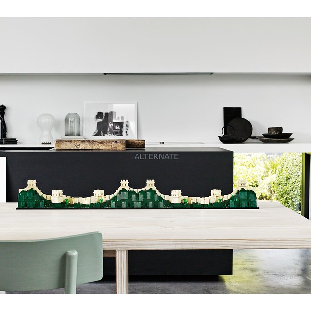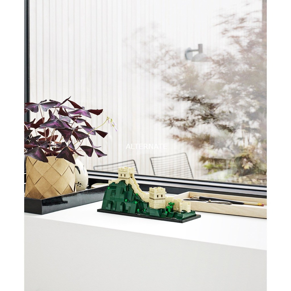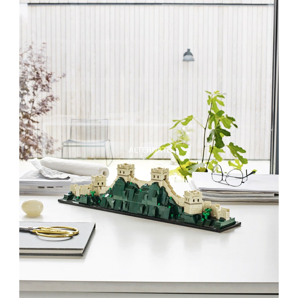 再來就是超逼人的萬里長城,同樣利用大量的滑面磚形塑出連綿不絕的山勢和城牆,用L型的零件、1x1 的小方格做出城樓,十分期待城牆在斜坡處的搭建方式啊!這組最邪惡的地方就在於會讓人產生想購買很多組的慾望(從包裝盒背面就開始了強烈的灌輸XD)~兩頭皆可以與另一組完美契合,高低起伏的走向也很符合現實的設定,只要你荷包夠深就可以無限延伸:D 而且在一片崇山峻嶺中,還點綴著些許植物;不管是單獨展示就很漂亮的自由女神,還是複數擺設滿足築城慾望的萬里長城,都很值得珍藏啊!